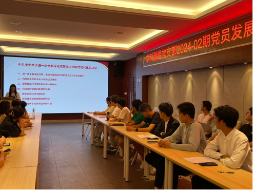 党的二十届三中全会与2024年7月15日至18日在北京举行,党的二十届三中全会通过的《中共中央关于进一步全面深化改革、推进中国式现代化的决定》提出进一步全面深化改革的指导思想,“习近平总书记关于全面深化改革的一系列新思想、新观点、新论断”是其中最重要的内容。为推动支部内同志学习贯彻党的二十届三中全会精神,本科测绘党支部于2024年9月22日在犀浦校区X4520举办9月份党日活动,胡嘉祎同志主持本次会议,陈荩娜老师出席并指导本次会议。