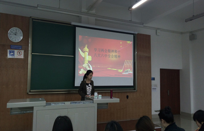 在解读十八届六中全会精神模块,杨乐首先向同志们介绍了十八届六中全会概况,她指出,全会总结了我们党开展党内政治生活的历史经验,分析了全面从严治党面临的形势和任务,认为办好中国的事情,关键在党,关键在党要管党、从严治党。最后,她讲到,党的十九大就要在今年下半年召开,我们要贯彻落实党的十八届六中全会各项精神、坚决履行会议作出的批示和相关决议,努力做好自己的本职工作、做成做优,以优异成绩向十九大献礼!