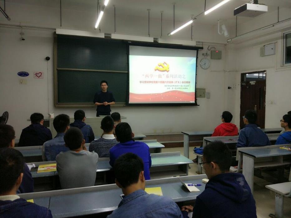 本科14级第一、二党支部开展了学习贯彻“学校党委十四届六次全体(扩大)会议精神”(下称:会议)的活动。会议由第一党支部书记杨都强老师主持。
