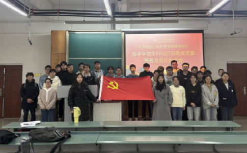 本科地质资勘党支部于2024年11月21日下午15时50分在X4151召开2024-02期预备党员接收大会暨“践行文化思想,共筑强国使命”主题党日活动。会上审议、讨论、表决关于接收冯超俊、敖继哲、李心悦、孙诚、刘书文、李峥、余锦鹏、邢赫澄、冯致瑞9名同志为预备党员的相关事宜,共同学习领会习近平文化思想,贯彻落实党的二十届三中全会精神。本次大会由本科地质资勘党支部书记刘伟婷同志主持。