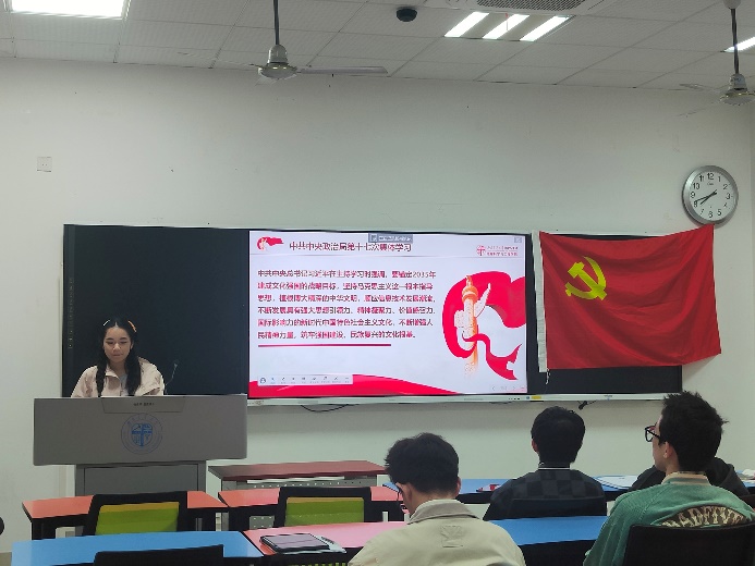 此外,大家还讨论了创新在推动高质量发展中的重要性。一位党员同志指出,创新不仅是推动经济发展的动力,更是提升工作效率的关键。我们要特别关注科技创新,积极参与各类比赛和项目,以增强自身能力和集体竞争力。另外还讨论了“文化自信”在新时代背景下的重要性。