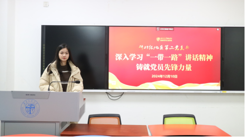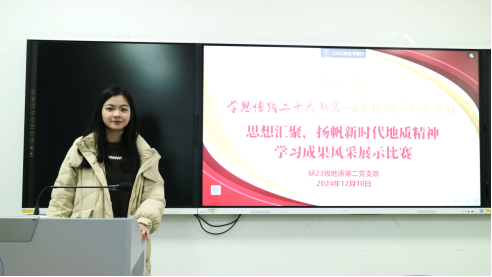 2024年12月10日,为鼓励研23级地质第二党支部成员总结对习近平新时代中国特色社会主义思想、党的二十届三中全会精神、科学家精神以及地质精神的学习内容,深入学习“一带一路”讲话精神,铸就党员先锋力量,支部于犀浦校区X4137教室开展“思想汇聚,扬帆新时代地质精神”学习成果风采展示比赛暨学习“一带一路”讲话精神党日活动。