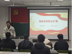 随后,支部召开预备党员转正大会,主持人薛怡然向大会报告应出席党员人数与实际到会人数并宣布本次大会的议题是审议、讨论并表决林星杰、杨小江两位同志的转正问题。