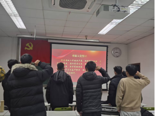 最后,支部书记薛怡然同志带领全体党员重温入党誓词,入党誓词响于耳畔,初心熠熠指引前路。在今后工作学习中,支部全体党员将认真履行党员义务,时刻不忘入党初心,积极发挥党员先锋模范作用。