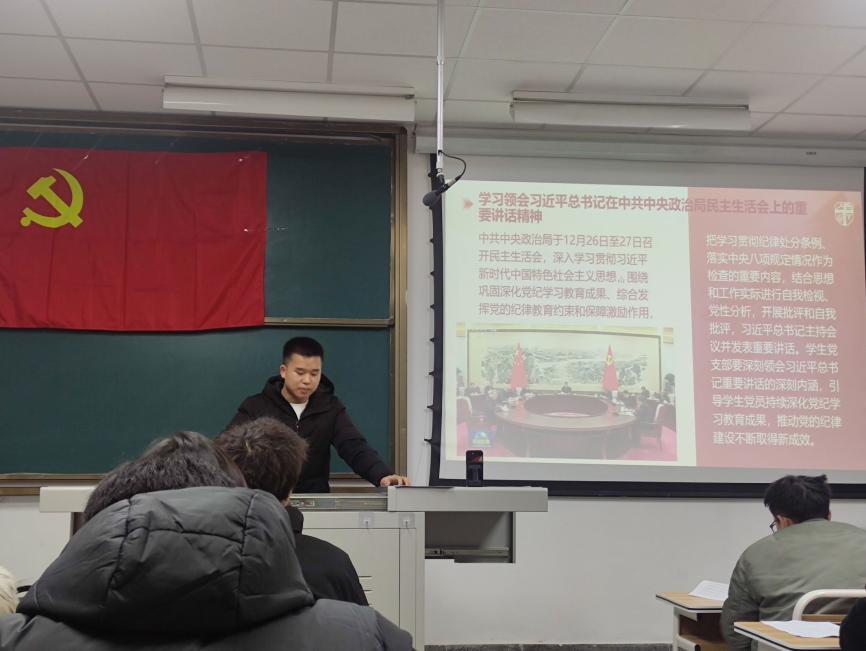 活动伊始,支部成员共同学习了习近平总书记在中共中央政治局民主生活会、庆祝澳门回归祖国25周年大会暨澳门特别行政区第六届政府就职典礼上的重要讲话精神,以及习近平主席发表的2025年新年贺词。党员们深刻领会讲话精神,纷纷表示要将党的纪律要求和国家发展目标与个人学习、科研实践紧密结合,为推动国家建设贡献力量。