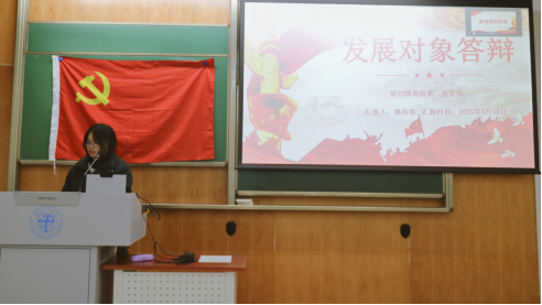 为切实做好2025年发展党员工作,切实提高党员发展质量,2025年3月18日,研23级地质第二党支部在犀浦校区X4155教室内举行2025-01期发展对象推优入党答辩大会。此次大会的主要议题是讨论关于入党积极分子蔡金龙、苟长林、廖礼雪、姚再珍、郑涵、朱成琦、朱元昊共7位同学成为发展对象的议题。