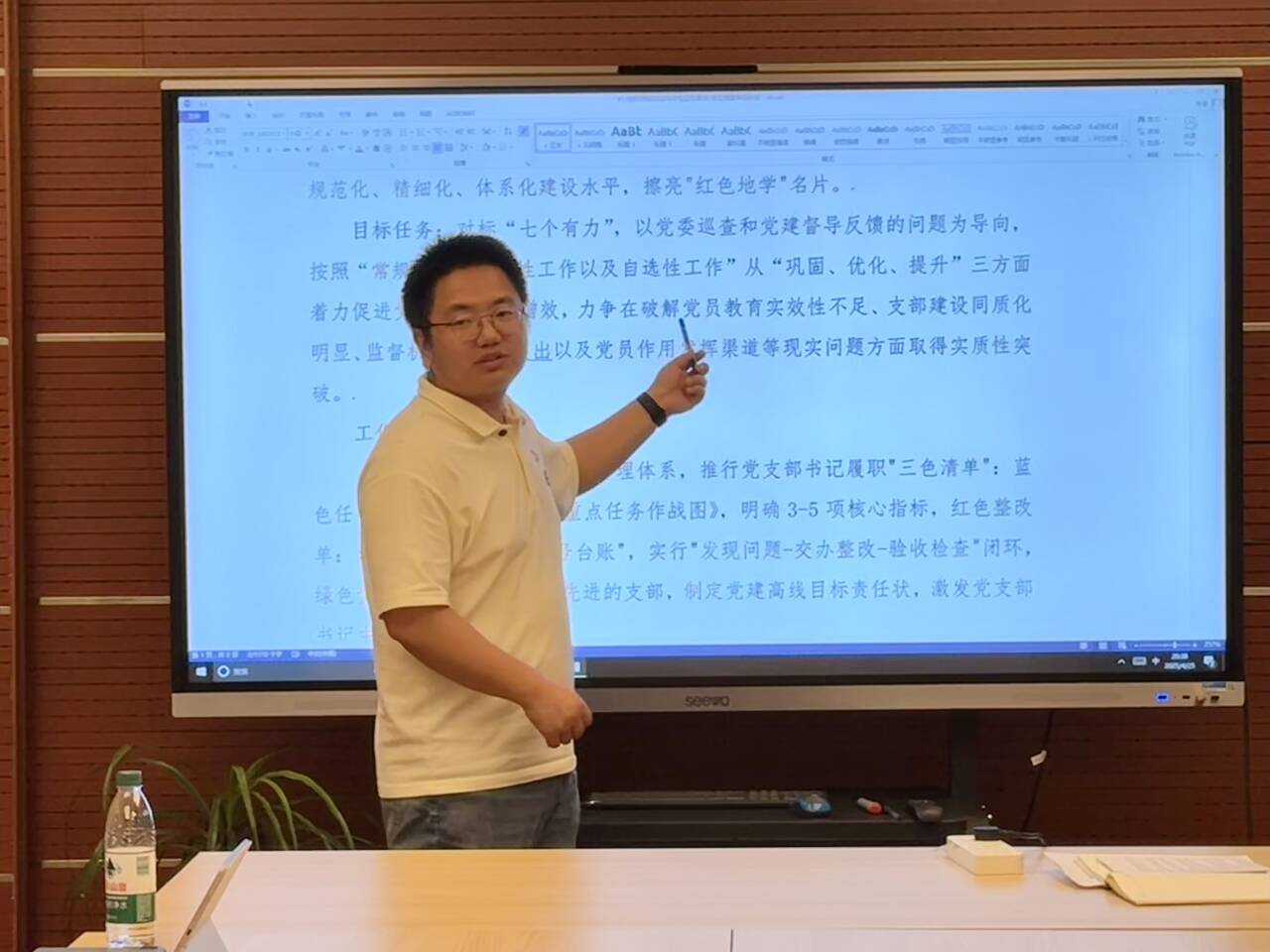 紧接着,文强老师通过展示学生党建的工作要点,强调活动策划要结合思政节点,鼓励大家积极探索“数字化转型赋能党建创新”的切入点,并对“常规工作、阶段性工作、自选性工作”这三个类型的工作提出相应要求,对深入贯彻中央八项规定精神学习教育进行了着重指示。