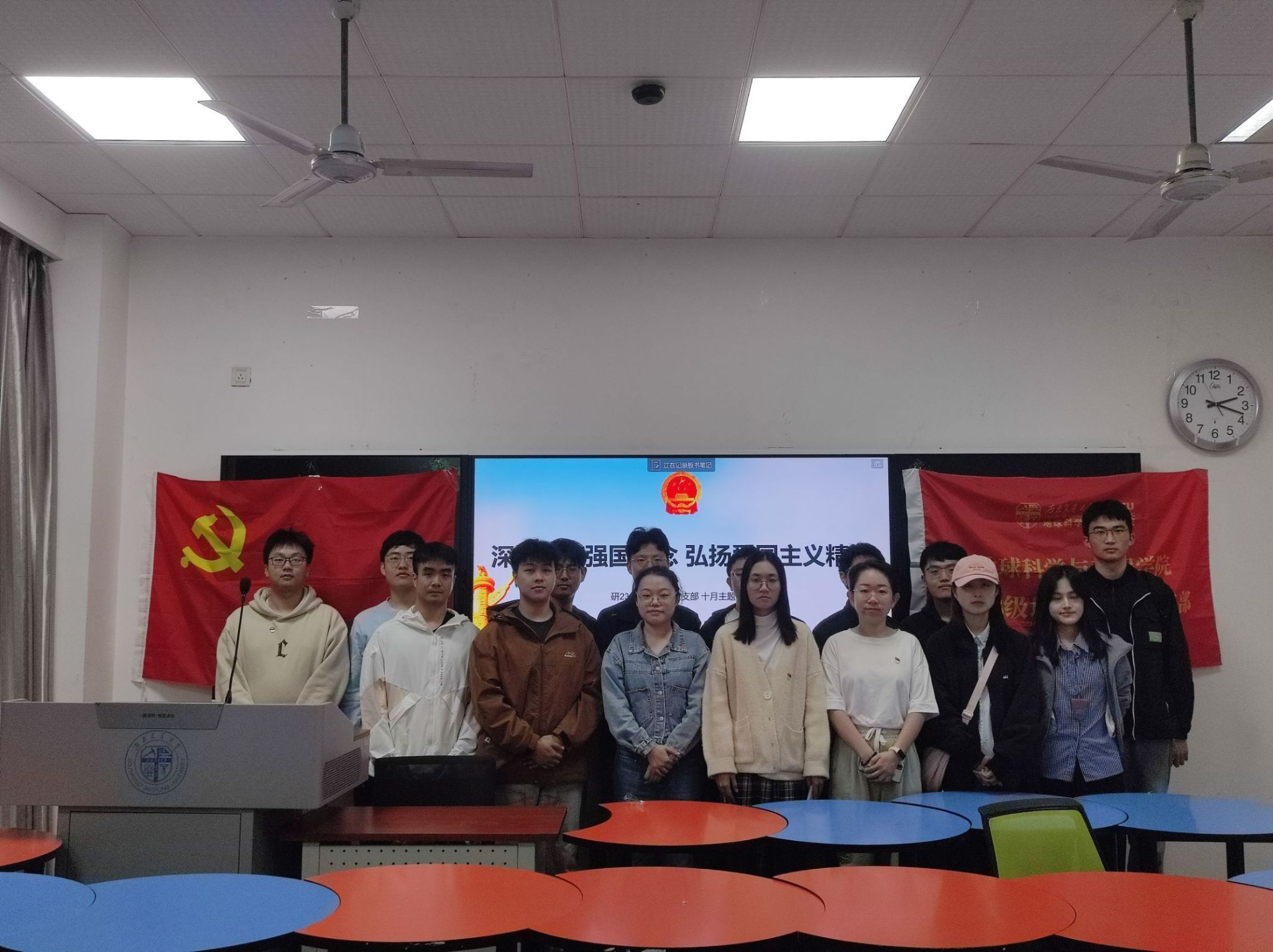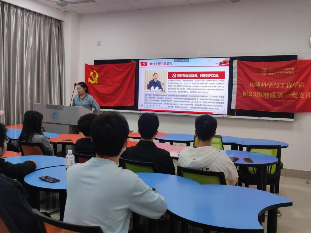 2024年1022日下午14时,研23级地质第一党支部于X4137教室顺利召开了“深化教育强国理念弘扬爱国主义精神”主题党日活动,本次活动旨在学习贯彻习近平总书记在全国教育大会重要讲话和全国教育大会精神,大力弘扬伟大爱国主义精神,使支部成员充分认识到教育是国家发展的根本,而爱国主义精神则是推动教育发展的强大动力。本次党日活动由党支部书记王睿同志主持并领学,支部成员总计16人与会。