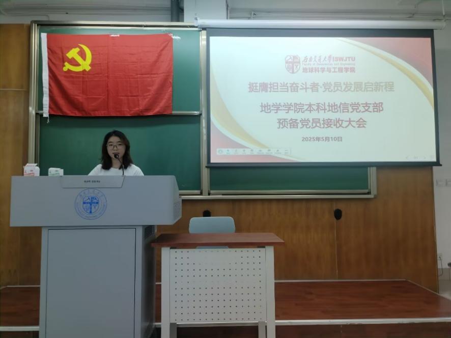 本科地信党支部于2025年5月10日晚上19时在X4153召开2025-01期预备党员接收大会,地点为本次大会的议题:讨论是否同意接收张嘉南、应圣铭、李承轩、陶涵、苏笑盼5名同志为预备党员。本次大会由本科地信党支部书记候王悦同志主持。