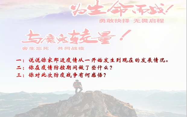 然后同志们分别对此次疫情发表了自己的感想。同志们对我党的组织力、联系群众的能力表示赞叹,听党的指挥一定可以取得战疫的胜利,中国共产党是伟大的,中国人民是伟大的,今生有幸生于华夏!大家纷纷表示,生命重于泰山,疫情就是命令,防控就是责任。在抗击疫情的非常时期,我们要顾全大局,听从安排,携手同心,众志成城,共克时艰,为打赢这场疫情防控阻击战贡献力量。