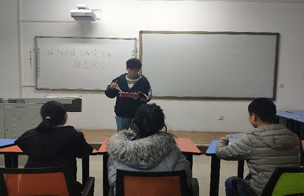 2019年12月11日下午4:00,研17级环境三班党支部在X9402召开支部党员大会,讨论关于接受王钟宽同志按期转为中共正式党员的相关事项。支部共有正式党员4名,预备党员2名,到会正式党员3名,应到会有表决权的正式党员超过2/3,会议有效。支部党员大会由支部委员牟玉斌主持。