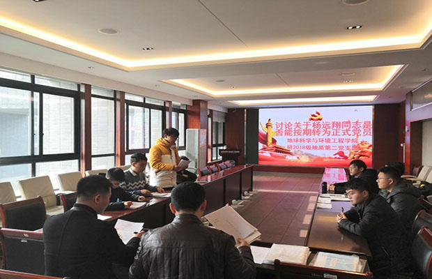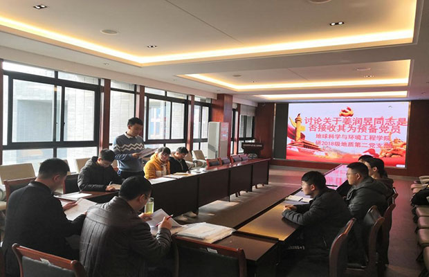 2019年12月11日上午10:30,中共西南交通大学地球科学与环境工程学院研2018级地质第二党支部在四号教学楼X4520召开党支部大会。本次会议的议题是讨论是否接收姜润昱为预备党员和杨远翔同志转正事宜。此次会议由党支部书记周航同志主持,组织员傅尤刚老师莅临指导。