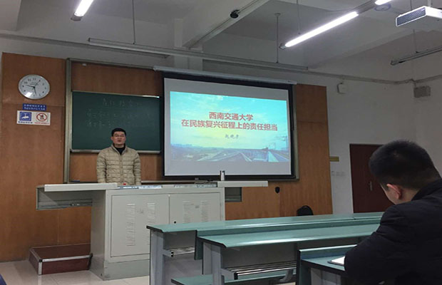 2019年12月5日在x4517教室,研18级地质一、二班党支部邀请赵晓彦老师给支部党员讲授讲课,授课主题为“西南交通大学在民族复兴征程上的责任担当”。