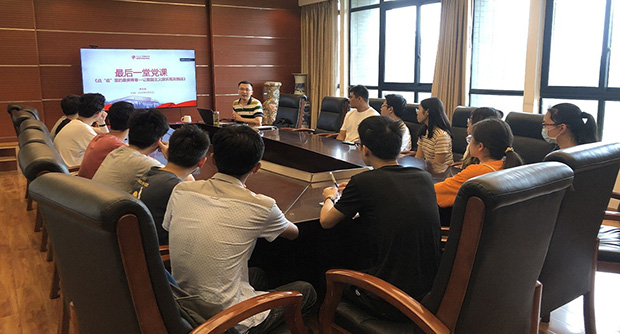党委副书记傅尤刚以“战疫里的最美青春—让爱国主义旗帜高高飘扬”为题,通过线上线下联动的方式为本科生党支部讲党课,其中本16级党支部在X4531线下参与党课,本17、18、19党支部通过腾讯会议线上参与党课。