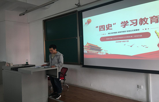 党员同志杨成从学习教育总体要求、主要措施、加强组织领导等三方面,对班级关于开展党史、新中国史、改革开放史、社会主义发展史学习教育及疫情防范进行了发言分享。