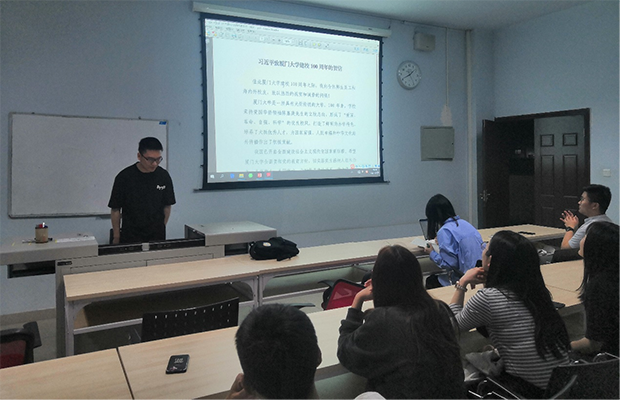 之后进行本次学习活动的第二项——学习习近平总书记致厦门大学建校100周年的贺信精神。由本支部入党积极分子靳凯同志带领大家一起阅读学习习近平总书记致厦门大学建校100周年的贺信内容。这一封贺信深刻体现了总书记和党中央对高等教育的高度重视和殷切希望。作为一名新时代的研究生党员,我们更要坚定理想信念,不忘初心,扎实学习专业知识,为服务国家富强、民族复兴、人民幸福贡献力量,不负韶华。