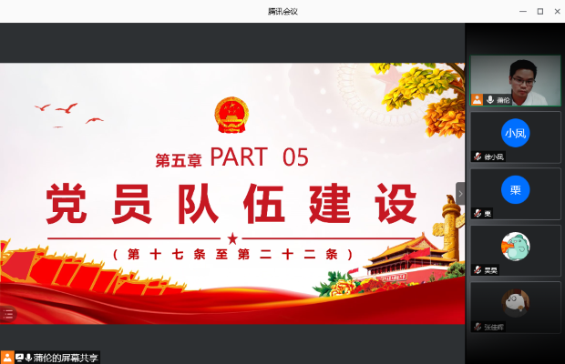 在会议开始前,支部党员和入党积极分子认真阅读并自学了《条例》。会议过程中,蒲伦通过PPT带领大家又重点学习了《条例》中的总则、组织设置、主要职责、党的纪律检查工作、党员队伍建设、思想政治工作等和当前党支部紧密相关的内容,并表示作为学生党员务必要深入领会《条例》精神,全面掌握《条例》内容,严格遵守和执行《条例》规定。