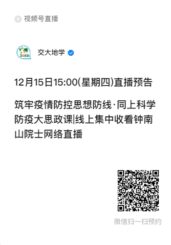 欢迎院内广大师生提前扫码微信预约,届时一起与地学师生共同相聚云端,同上科学防疫大思政课,一起探讨收看心得。