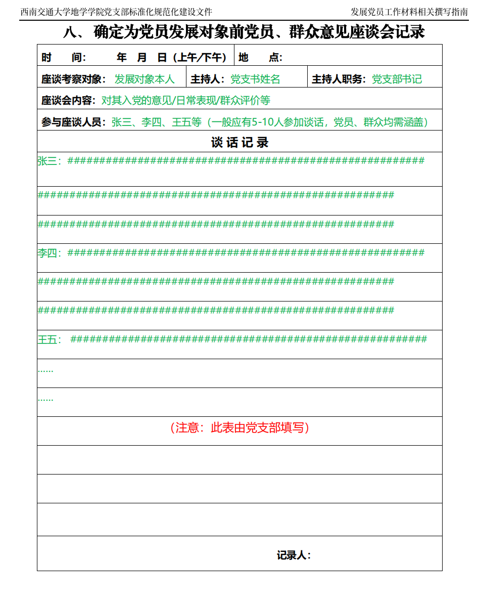 确定为党员发展对象前党员、群众意见座谈会记录撰写指南: