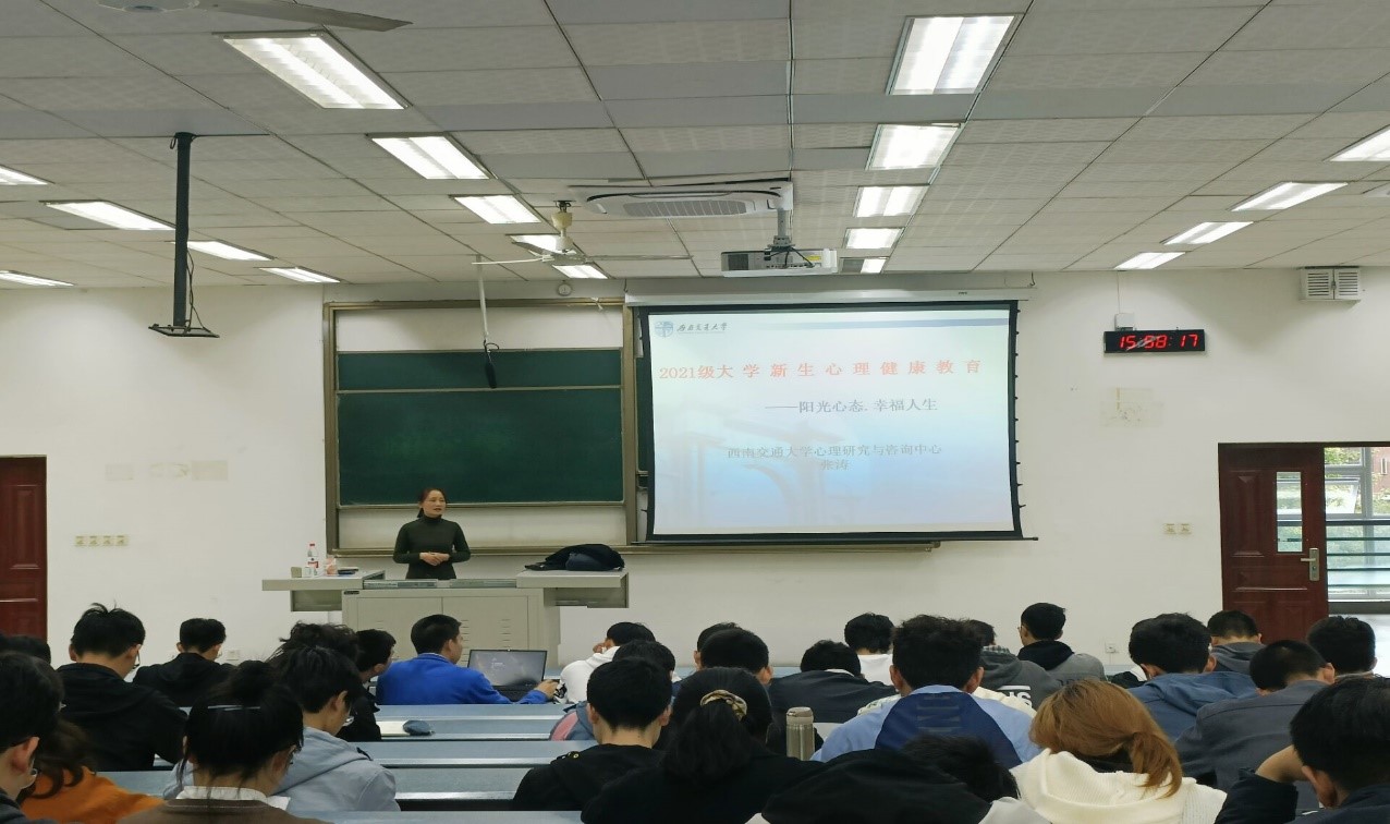 首先,张老师对大家来到西南交大表示了欢迎,总结了入学以来我们面对的问题并鼓励大家以积极的心态面对新生活、适应新生活。其次,对大学四年的目标进行了简要的概括,帮助我们确立好自己的目标,做好自我的人生规划。随后,张老师从人际交往、爱情和自我身心健康等方面具体阐述了可能面对的问题以及解决办法,并从探索、学习和提升自我三个方面给出了更明确的现阶段任务。