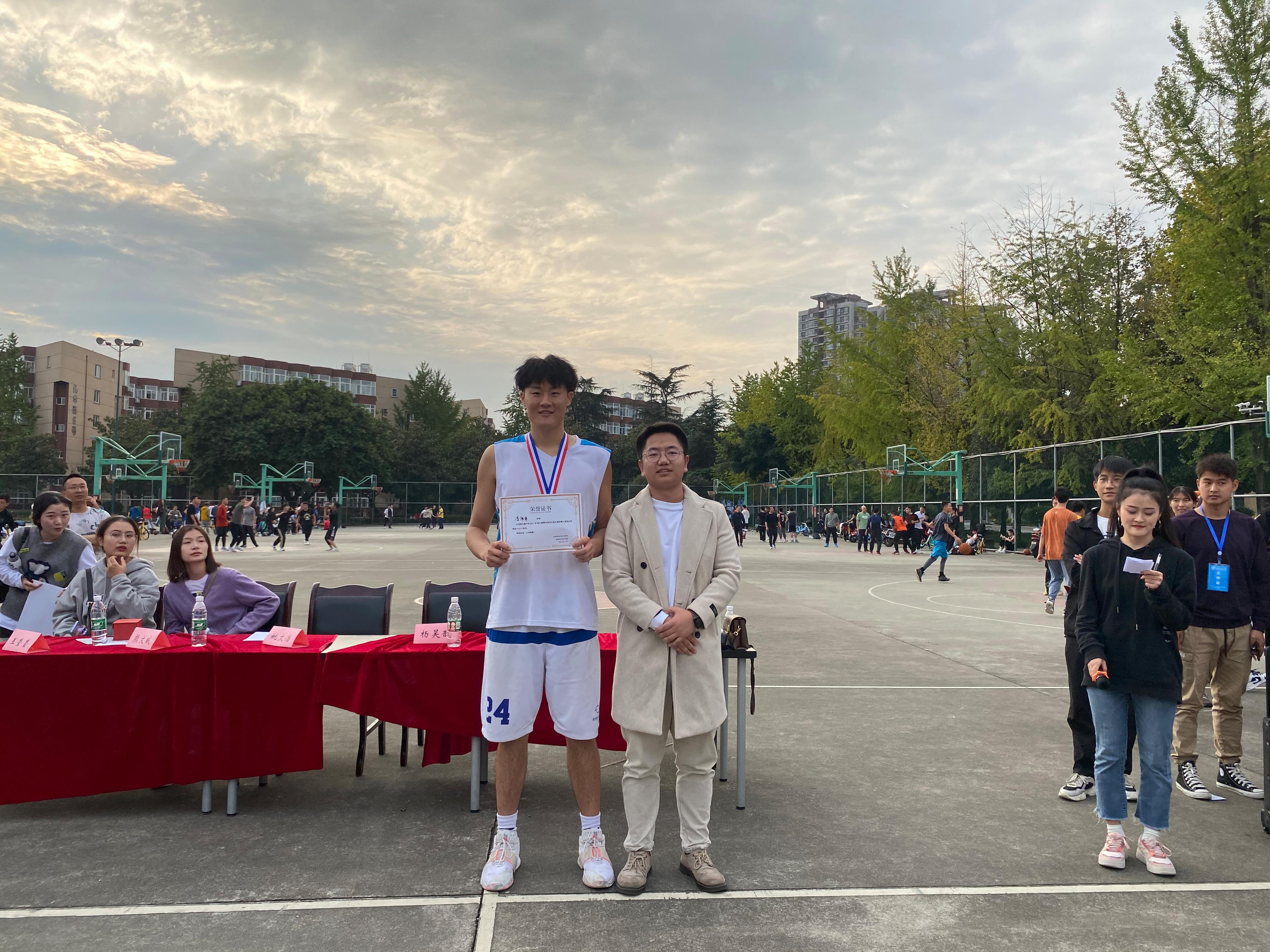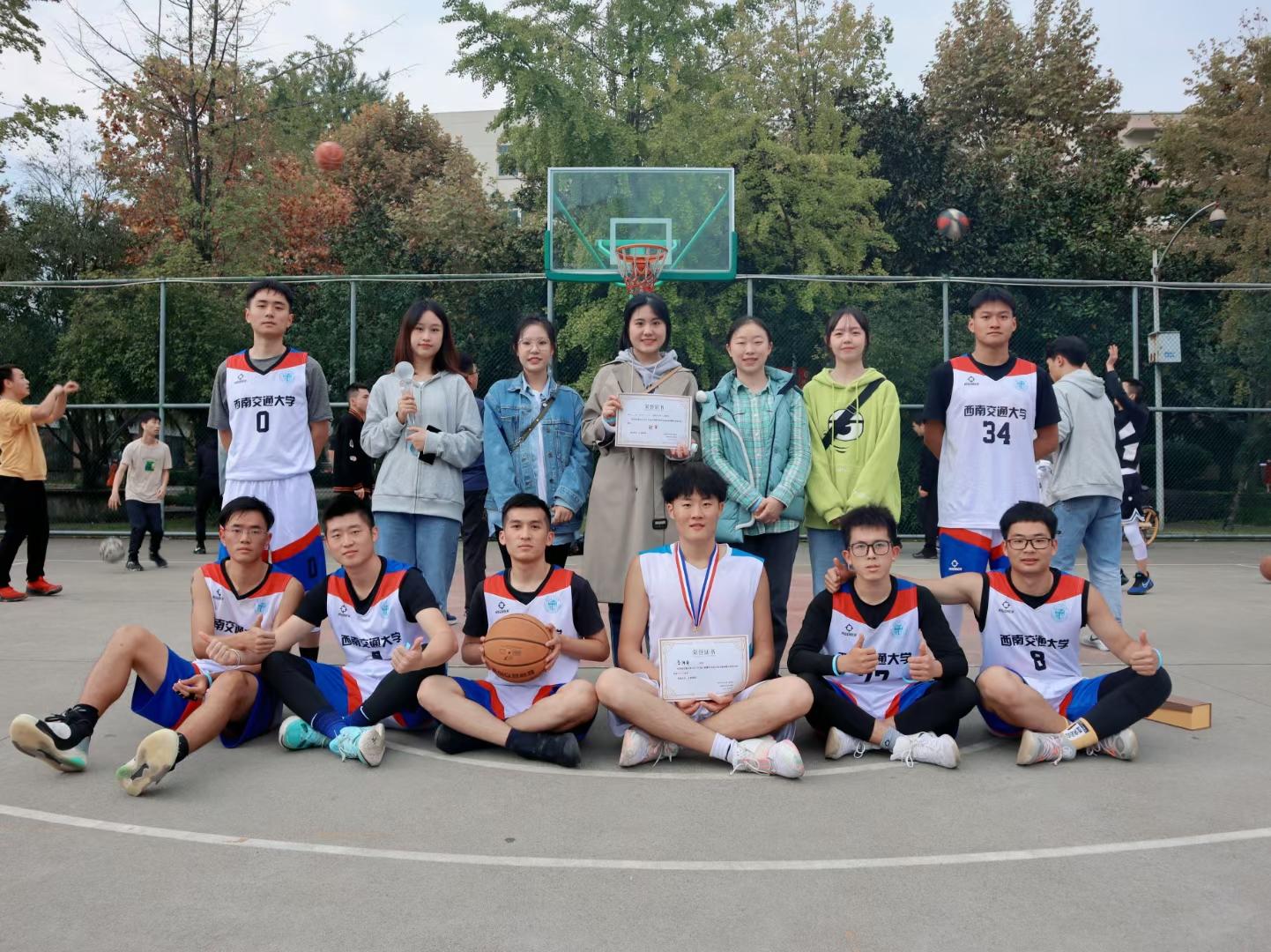 与物理学院的三十多位女生积极参与,纷纷在篮球场上大显身手。经过激烈角逐,最终由付蝶、刘玉洁、文心媛分别斩获冠军、亚军、季军。