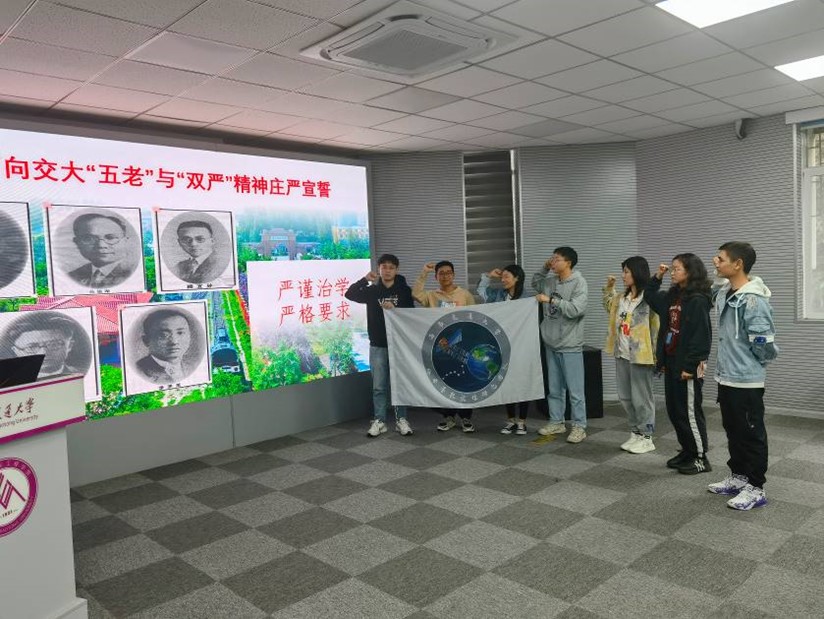 活动的最后,刘锦宇作为代表与团队同学共同面向交大“五老”与双严精神庄严宣誓。号召团队成员弘扬爱国奋斗精神,树立崇高远大理想,谨记“精勤求学、敦笃励志、果毅力行、忠恕任事”的交大校训,向“五有”交大人的标杆靠拢。