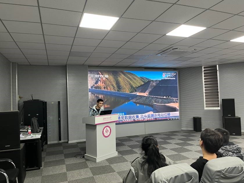 北斗导航定位研究团队的黄应华同学结合同学日常生活向大家介绍了北斗三号给大家生活带来的改变。旁征博引,浅显易懂的向大家介绍了北斗三号全球定位导航系统的原理、技术与应用。引起在场同学的热烈讨论。起到了良好的效果。
