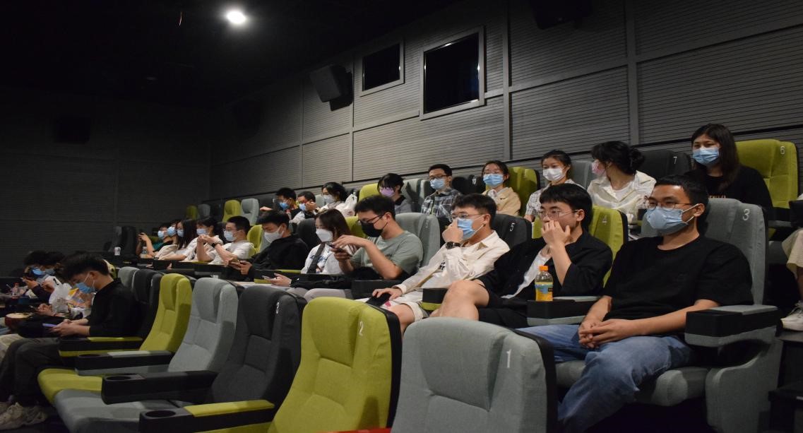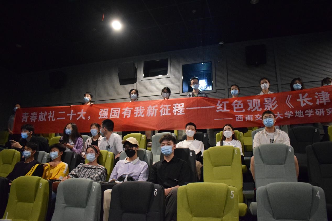 研究生党员在犀浦c+影院观看红色电影《长津湖之水门桥》。