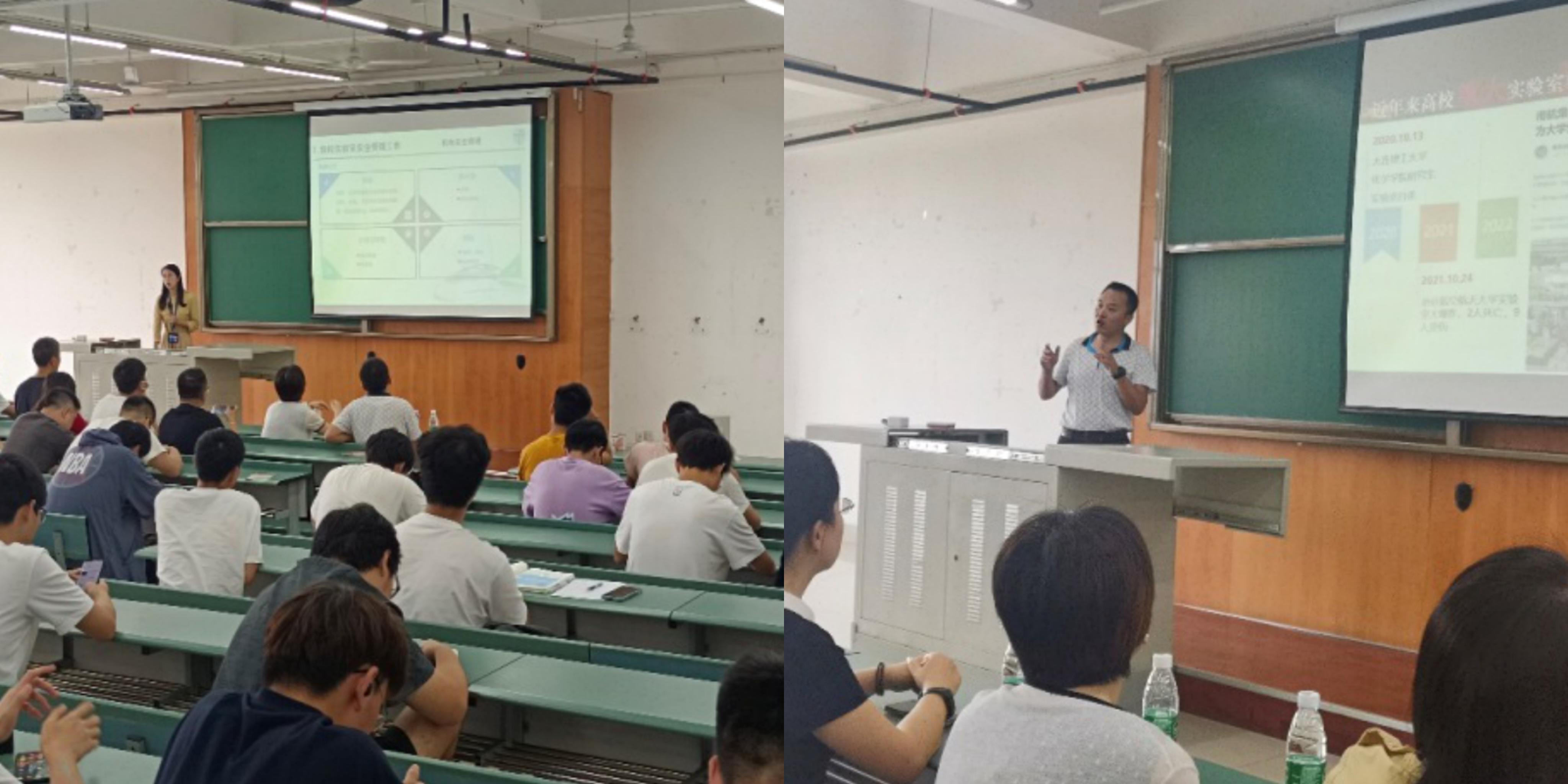 实验室的管理模式及相关规章制度,向同学们介绍了近年来多次开展的实验室安全知识竞赛、安全讲座及演练活动,呼吁师生积极参加2022年“实验室+”安全教育宣传系列活动,携手共建和谐平安校园。