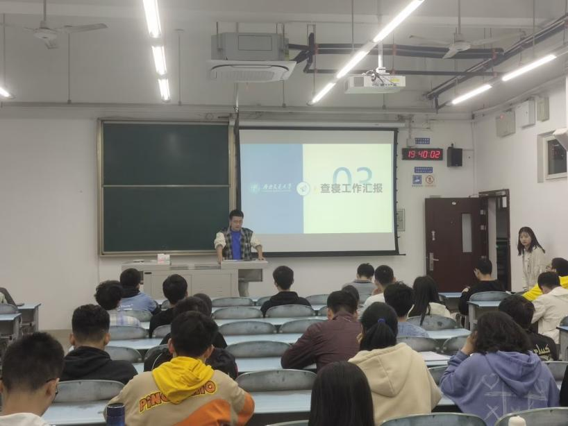 接下来,学生园区与事务中心生活部副部长彭路鹏就开学以来的查寝工作进行汇报,其表示寝室风貌总体情况良好,但仍然存在异味、杂物堆积、外卖垃圾处理不及时等问题。