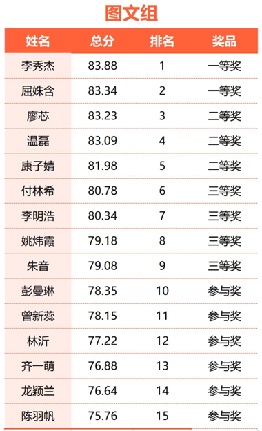 最后在统计完所有参赛选手的得票数后由主持人公布获奖选手,本次大赛工评选出28份优秀作品,其中图文组15份,文创组13份。