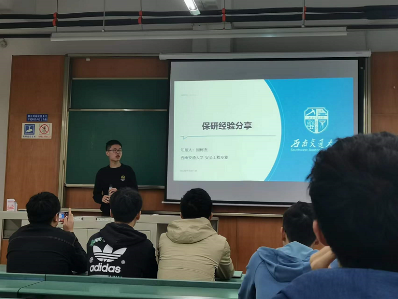 本次活动邀请了19级安工专业刘欣宇、周柯杰两位优秀学长解答同学们对留学与保研方面的疑惑。