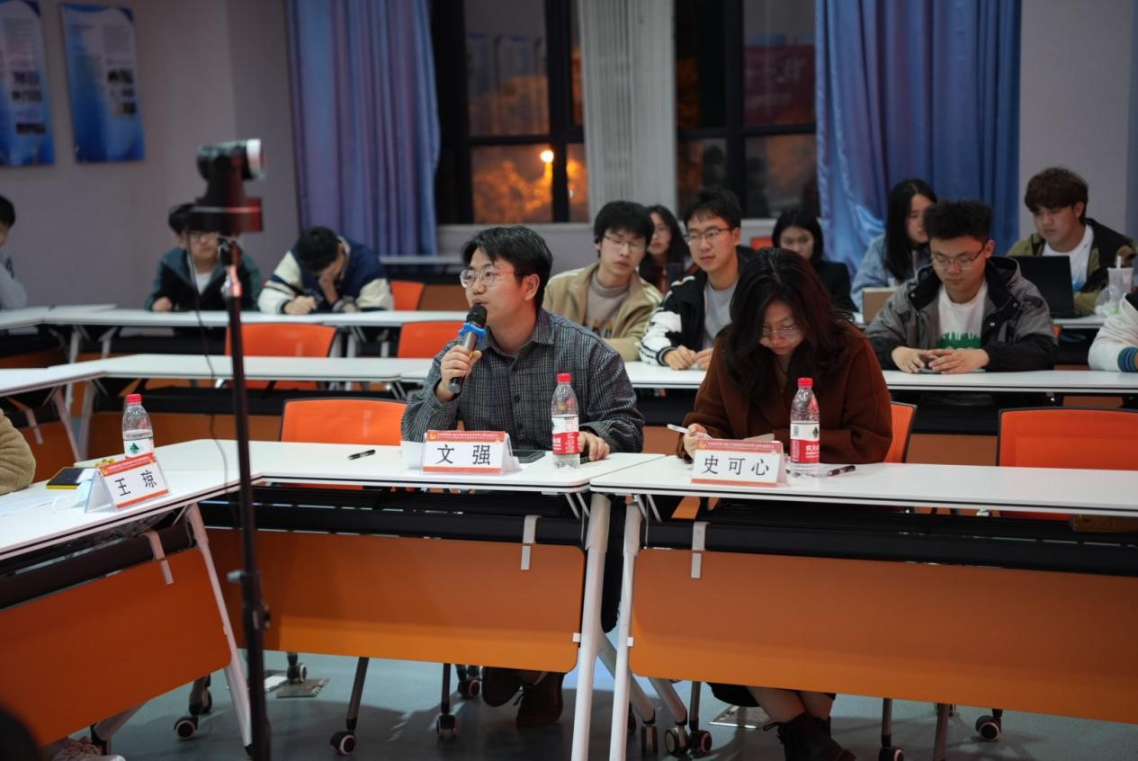 各团支部答辩的同时,由评委老师进行打分评定。答辩结束后,杨都强老师、王琼老师、文强老师、张婷老师对各团支部答辩内容优缺点进行点评,针对答辩PPT设计、语言表达等方面给出了专业的指导,各团支部认真聆听并深刻反思自身不足,表示一定会再接再厉,呈现更好的答辩效果。