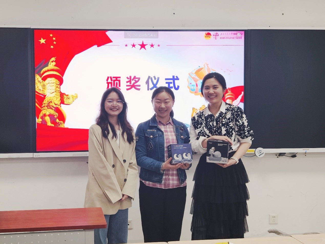 本2022级地质第一团支部在本次主题实践团日活动中,邀请了红路学讲团的成员于佳琪为同学们进行专题讲座。于佳琪将二十大的内容与同学们的日常生活联系在一起,不仅为同学们解决了当下生活中的许多烦恼、忧虑,同时也给同学们的大学生活提供了许多方向的指导,鼓励同学们将理想与现实联系,将个人生活与党对青年的要求结合,立志成为立大志、明大德、成大才、担大任的新时代青年。之后,团支部进行了关于团的知识竞赛,同学们积极抢答、氛围火热,在对回答优秀的同学进行颁奖之后团支部所有同学一起合照留念。