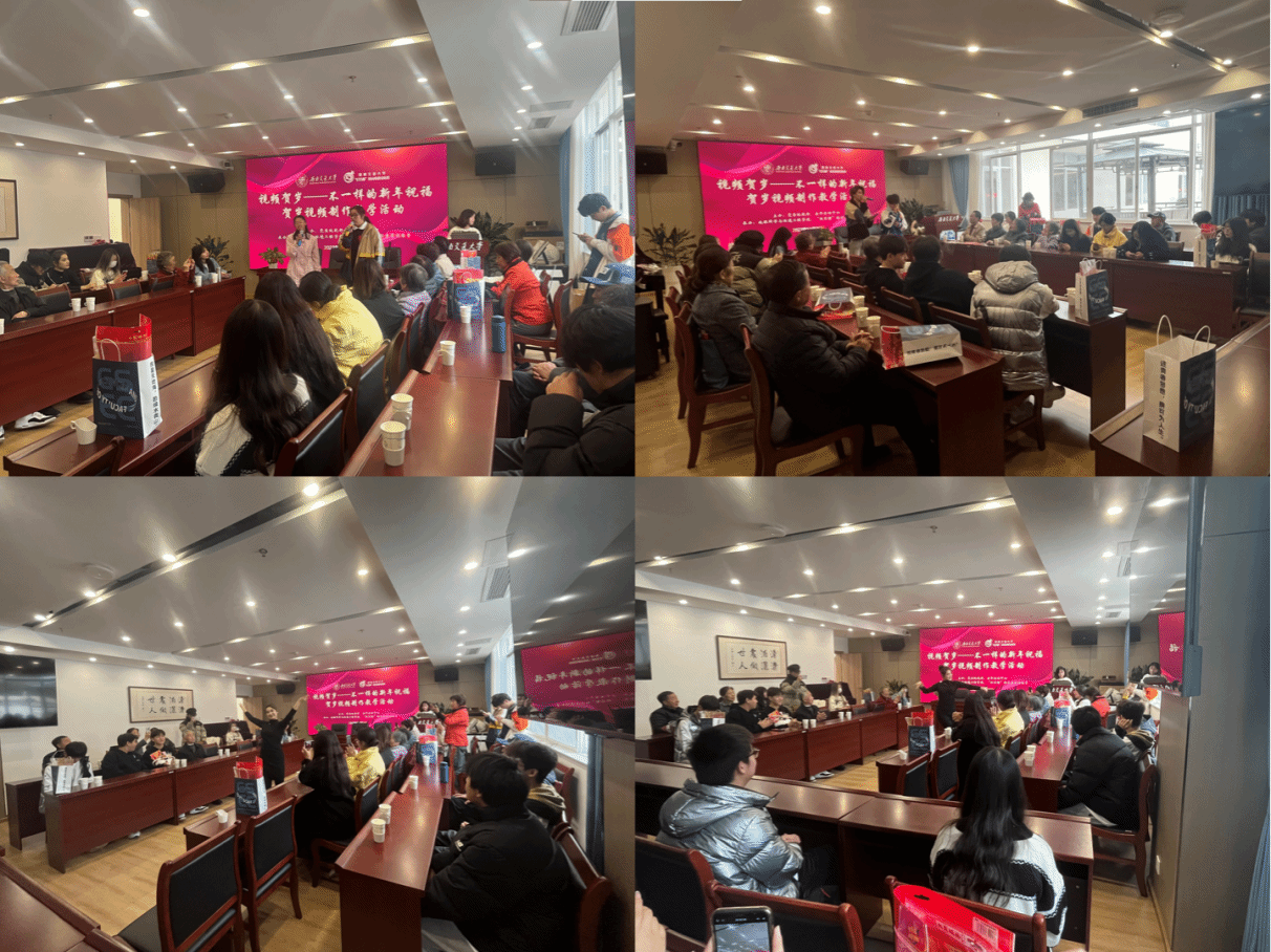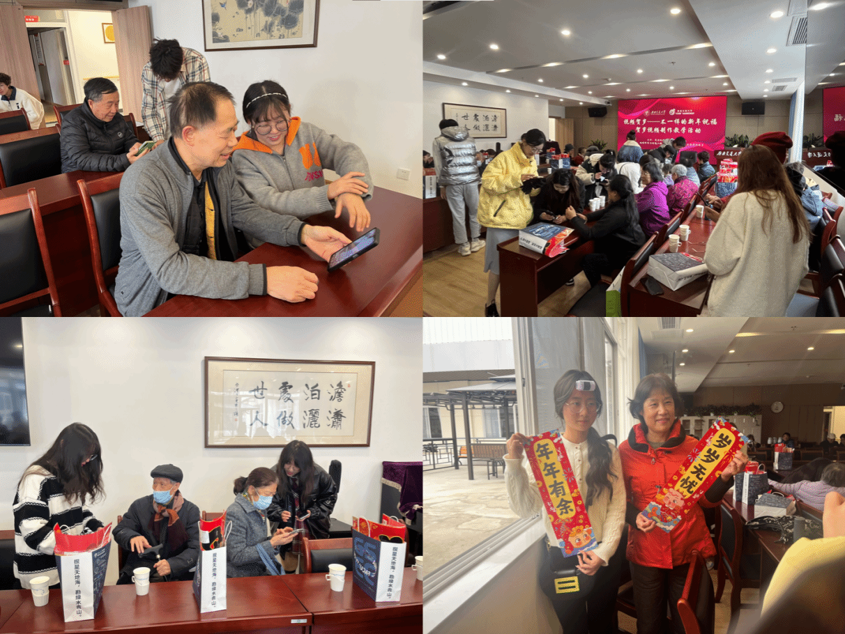 组织“红石榴”综合素质训练营学生来到西南交通大学犀浦校区五食堂三楼老年中心开展了“视频贺岁——不一样的新年祝福”贺岁视频制作教学志愿活动。