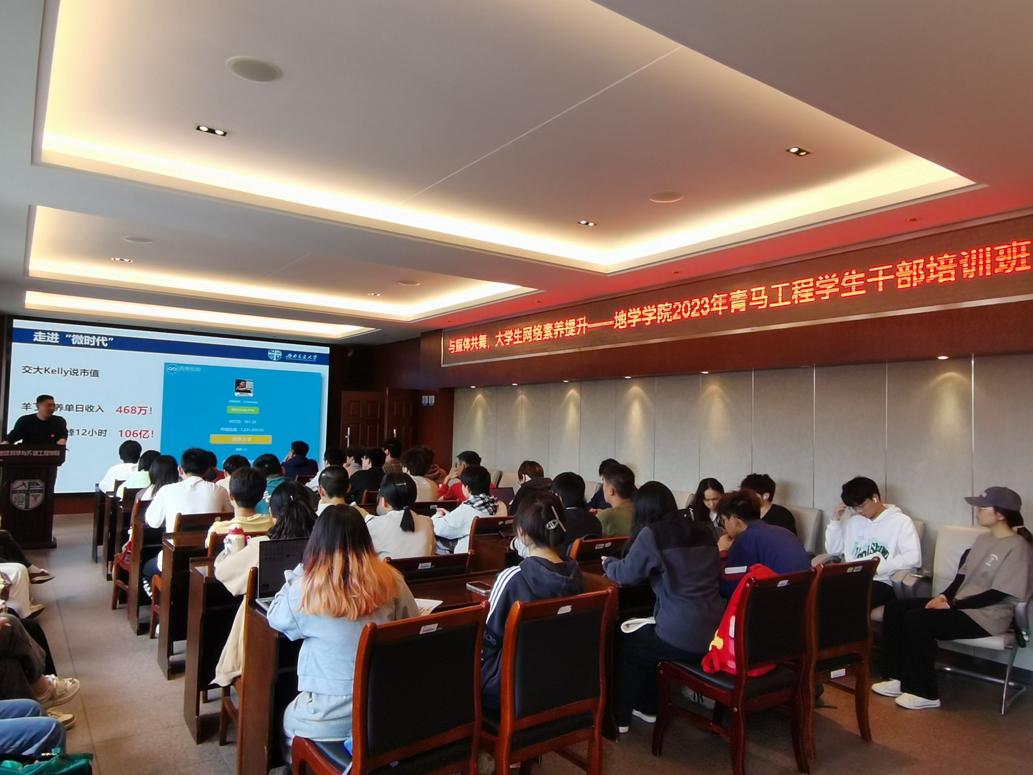 本期培训班紧紧围绕“讲座培训长才干、座谈交流悟心得、实践访企增见识”三线并举的方针制定培养计划。邀请校团委副书记、交大Kelly说网络思政工作室负责人任凯利老师,举办“与新媒体共舞:大学生网络素养提升”主题讲座,立足“交大Kelly说”公众号运营模式与宣传经验,专注提升学生网络思政素养,鼓励学生干部用新媒体优化工作模式,广发青年之声。