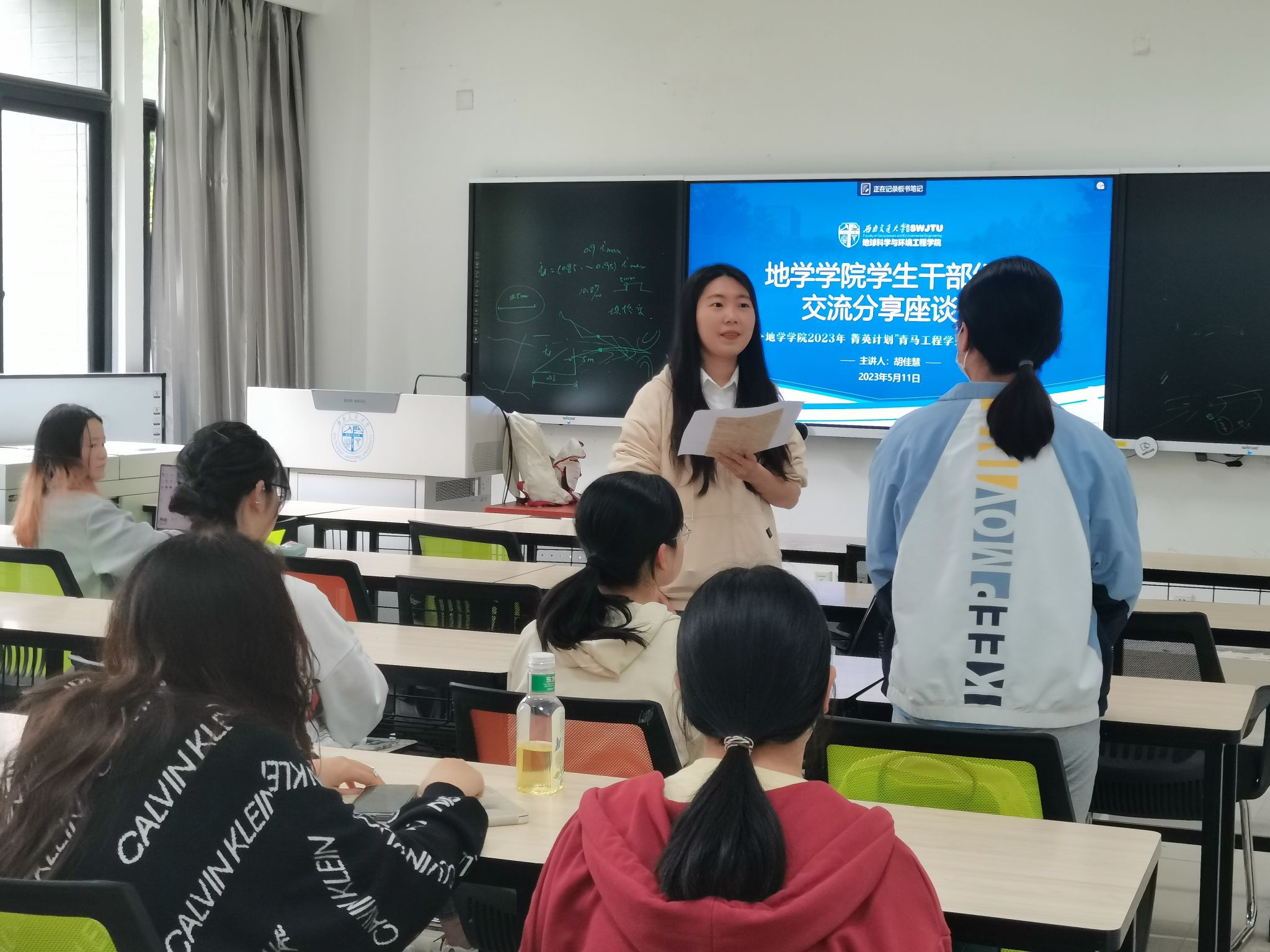 团委书记杨都强结合目前团学组织架构开展创新创业教育讲座,号召同学们联系工作经验,探索个人在组织构架下的发展潜能,同时为优化组织构架、提升工作效率探索更新的地学方法。