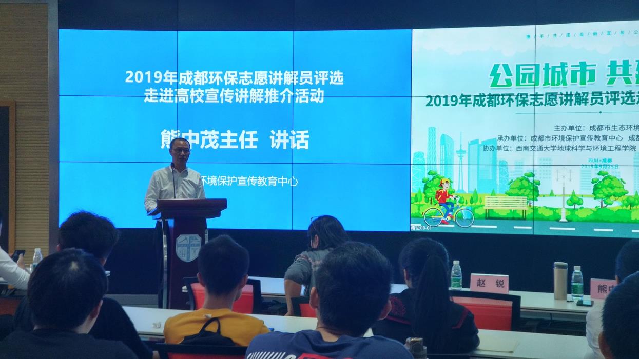 2019成都环保志愿讲解员推介活动圆满结束,此次推介活动由成都生态环境保护局主办,地球科学与环境工程学院青年志愿者协会承办,讲解员杨祎然讲解,包括对本次大赛的简介与推介和环境与健康讲座两个方面。
