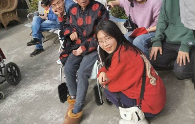 大约三点,管理人员组织大家出去逛公园,感受秋日的阳光。老人们分成了两队,一队由志愿者和工作人员带领,乘坐公交出行。另一队坐在轮椅上,由志愿者和工作人员推着出行,在遇到坎时,便将轮椅抬过去。一路上,老老少少一同欣赏着秋天的风光,感慨着往日,交流着如今。