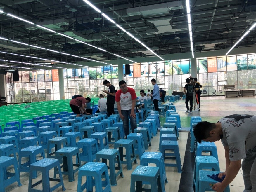 至此,本次新生们为自己布置开学典礼现场的工作圆满完成。