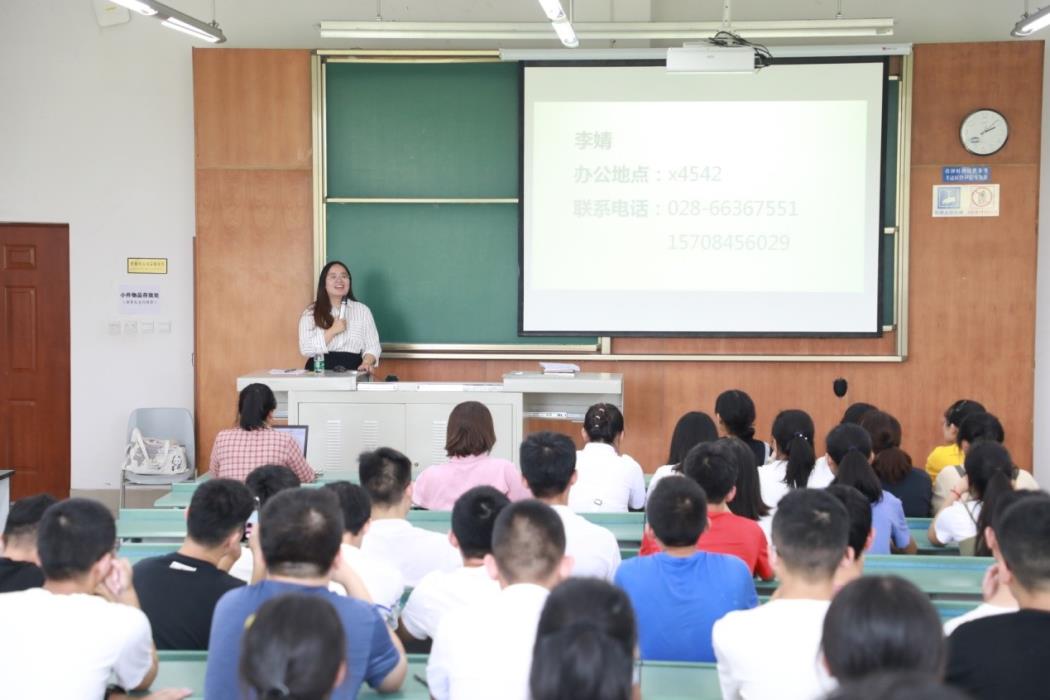李婧就《西南交通大学本科管理规章制度》讲述了考试、休学等与同学们息息相关的问题,并提到了学生管理的三个机制,即约束机制、激励机制和救助机制,之后并以此三个方面向同学们讲解。其中李婧特别提出学生受到法律处分的后果、校园贷等需要说明和注意的问题。
