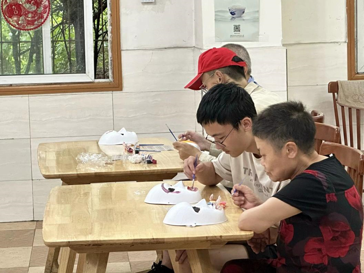 图4 志愿者带领老人进行脸谱绘画活动