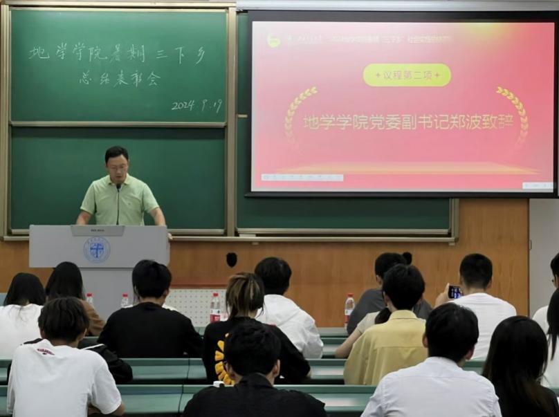 大会内容第一项由郑波老师发表讲话,郑波老师着重强调三下乡是理论与实践相结合,助力学生全面发展的一个重要途径,希望同学们通过亲身实践来更好地领悟所学理论,更身体力行检验所学理论成果,加强书本理论与现实状况联系。