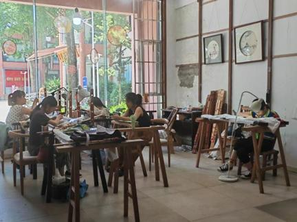 图3 蜀绣工坊内部及蜀绣工人