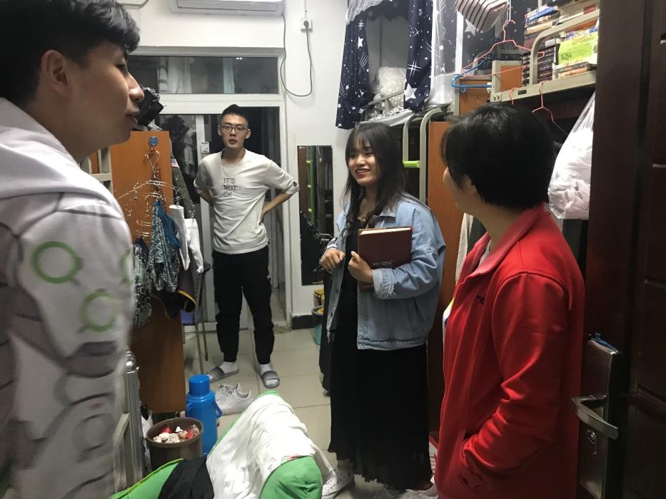 晚上,周青老师携学工组李婧老师和李国欣老师到学生寝室走访看望osu项目部同学,了解他们生活学习中存在的困难及未来规划,鼓励学生多参加科创活动及各类文体活动,多方面提高个人综合素质。