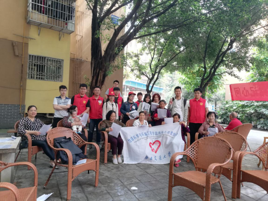 10点左右活动准时开始。曹铭沛、曹儒博、李睿等人为居民们带来关于地震时应急措施和震后自救的安全知识讲座,居民们认真地聆听并进行了学习。随后志愿者们给参与活动的居民们分发了小礼物。为了让居民们对消防安全知识掌握的更加透彻,讲座后我们与居民们进行了消防安全知识座谈,为居民们解答了更多的疑惑,同时居民们也对活动的开展提出了自己的建议。会后,居民们与志愿者约定好下一期活动时间,并对西南交通大学地学青协的志愿者们表示了感谢。