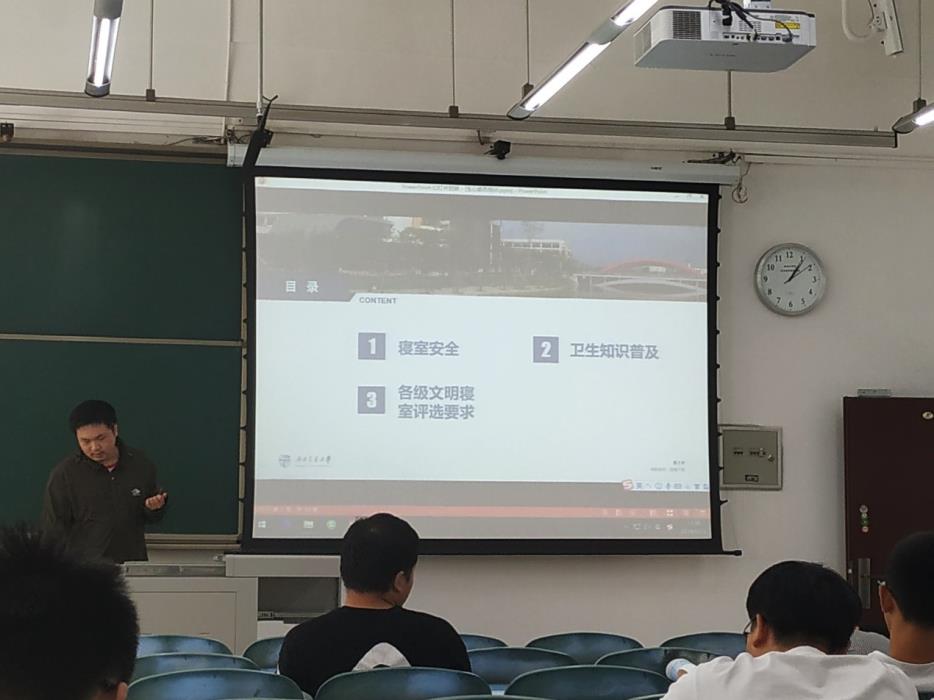 最后,培训会介绍了文明宿舍评选的细则。江金宸部长介绍到每次检查都是突击检查,宿舍检查一般是由生活部,学校学生自我管理委员会以及领导老师来开展。一旦发现有违章电器就一定会取消评选文明寝室的资格,评选过程将注重寝室卫生,宿舍风气等综合因素。寝室地面的干净程度,床铺的整洁情况,桌面上物品摆放是否整齐,将直接影响文明宿舍的评选。