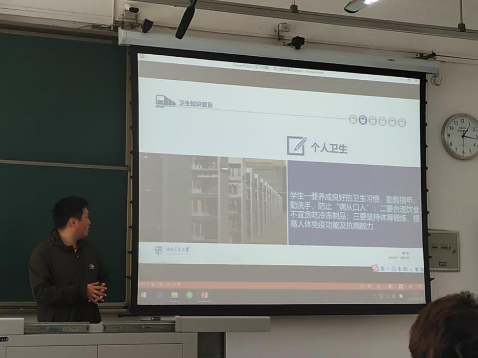 首先,江金宸部长强调了寝室安全的重要性。他先跟同学进行了互动,让同学们强化记忆了我们学校规定的违章电器,之后他指出,违章电器容易引发短路进而极易导致宿舍起火,所以宿舍内严禁违章电器。之后,他讲到宿舍禁止使用明火,宿舍的易燃物比较多,如果用明火极易引发火灾。紧接着他又强调宿舍内禁止乱接电源,他以几个惨痛的教训让我们更加认识到乱接电源线可能会带来的危险。
