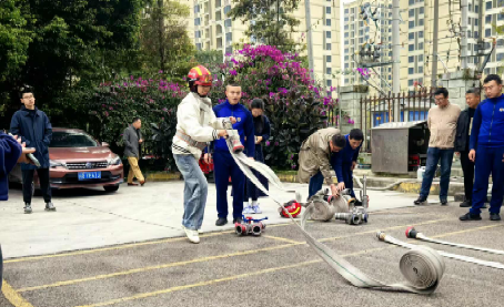 最后,同学们参与了消防水管的部署体验。在战士们的带领下,大家分工合作,迅速而有序地将消防水管铺设完毕,进一步加深了对消防救援流程的理解。