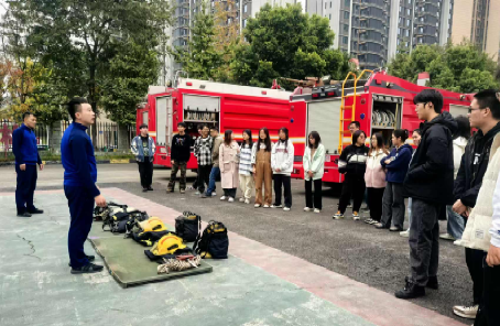 活动伊始,消防队战士首先向同学们详细介绍了各类消防装备。其中包括消防电锯、液压钳、破门器、各类消防转换接口、热成像仪以及高层专用消防水管。战士们不仅详细讲解了每种装备的功能和使用方法,还通过实际演示,让同学们直观地感受到这些装备在消防救援中的重要作用。